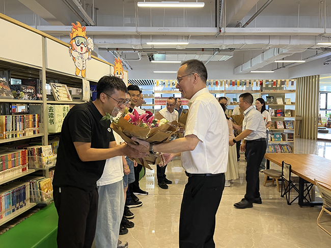 慰問中,盧旭帆實地查看校園環境,詳細了解學校的辦學特色、師資隊伍建設以及教育教學開展等情況。在看望教師代表時,盧旭帆與他們親切交談,關切詢問其工作生活情況,并送上鮮花和祝福,對大家的辛勤付出表示感謝。他表示,教師是立教之本、興教之源。希望廣大教師堅守教育初心,深耕教學一線,以更飽滿的熱情、更務實的作風投入到教育教學工作中,為推動全區教育事業高質量發展貢獻更大力量。