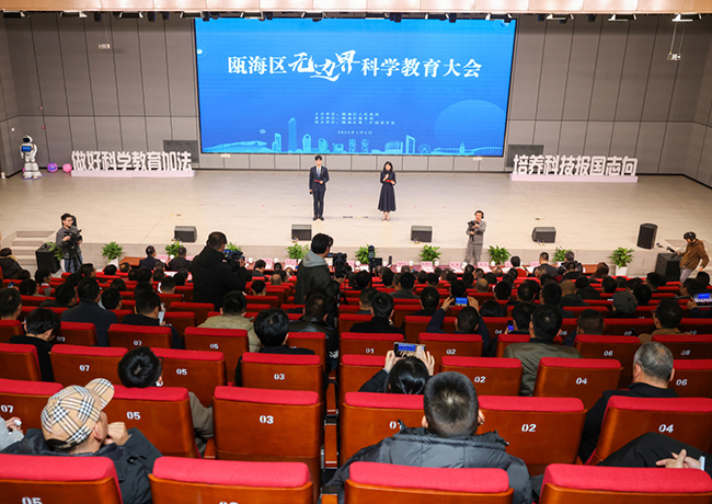 目前甌海轄內有10所高校和科研院所,同時擁有635家規模以上工業企業和4張國家級制造業金名片,已成立58所少年科學院,還入選了國家人工智能課程規模化試點區、省級人工智能助力教育教學改革試點區。甌海區教育局黨委書記、局長陳宏介紹道,“甌海積極優化校外資源供給,充分利用高校實驗室、高科技企業、高新技術園區、博物館群等科學教育資源,創建了128個校園科普場館,推進中小學科學教育高質量發展。”