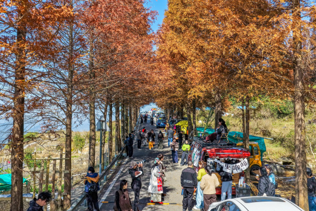 這條被譽(yù)為“溫州最美紅杉公路”的景觀,其水杉多為上世紀(jì)八九十年代栽種的行道樹,如今已成為一道亮麗的風(fēng)景線。最佳觀賞路段主要集中在陳北線、龍西線等區(qū)域,總計(jì)約22公里。赤橙黃綠的色彩與斑駁光影交織,宛如油畫。游客們愜意隨停,捕捉冬日的第一份浪漫,仿佛駛?cè)肓艘粋(gè)無需門票的天然影棚。